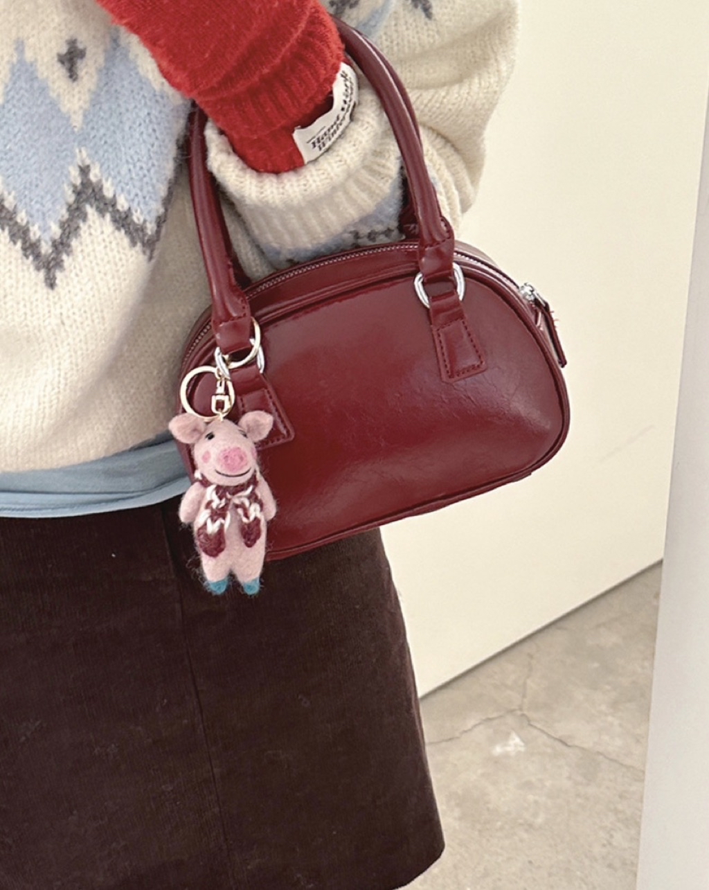 復古質感手提保齡球方包 附贈斜背帶